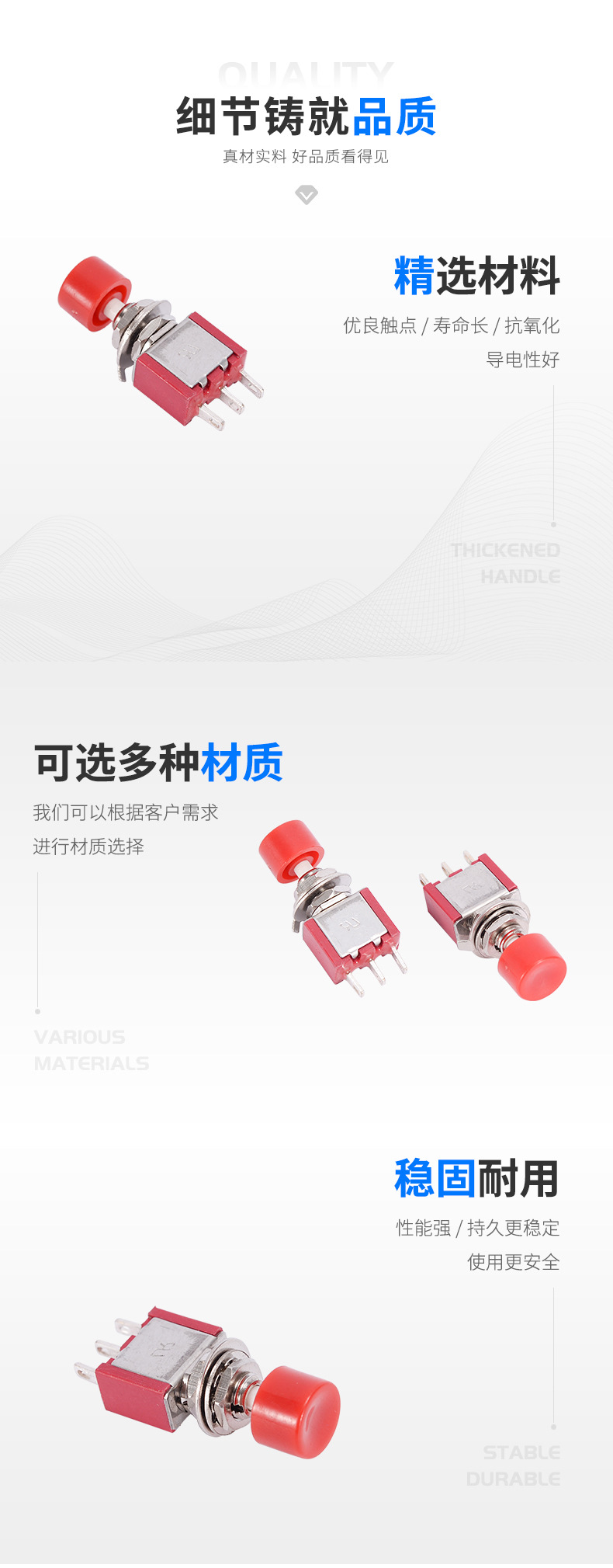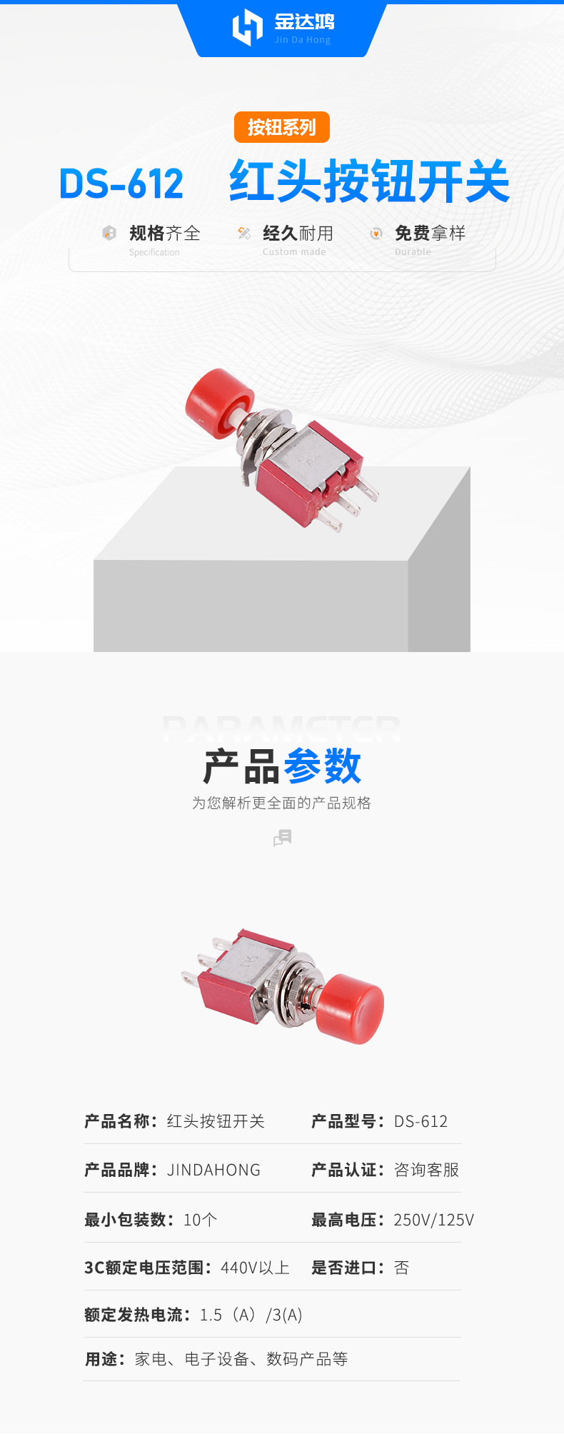 DS-612小型按钮开关红头带帽复位扭子开关3脚点动复位按钮厂家