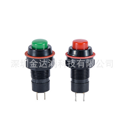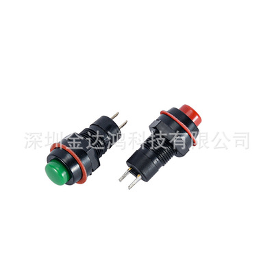 10MM点动DS-211/DS-213按通自复位无锁带锁2脚红绿色圆型按钮开关