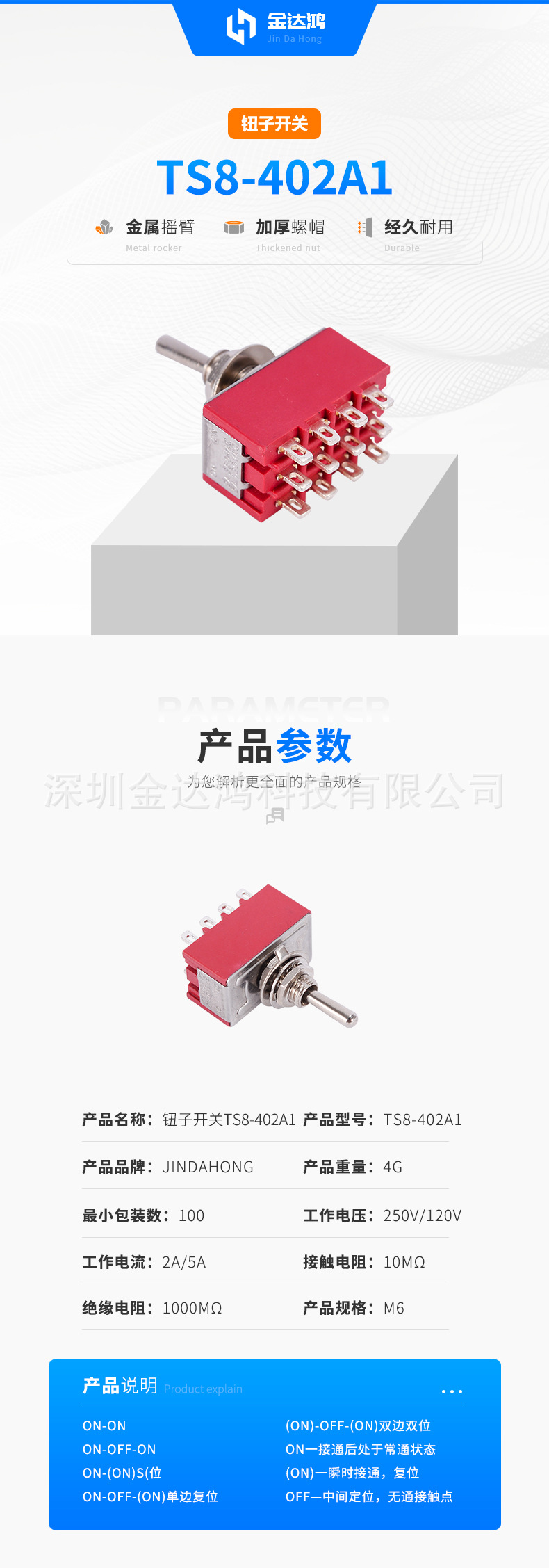 小型90度正弯脚钮子开关TS8-102C3大功率扭杆3脚2档摇杆开关