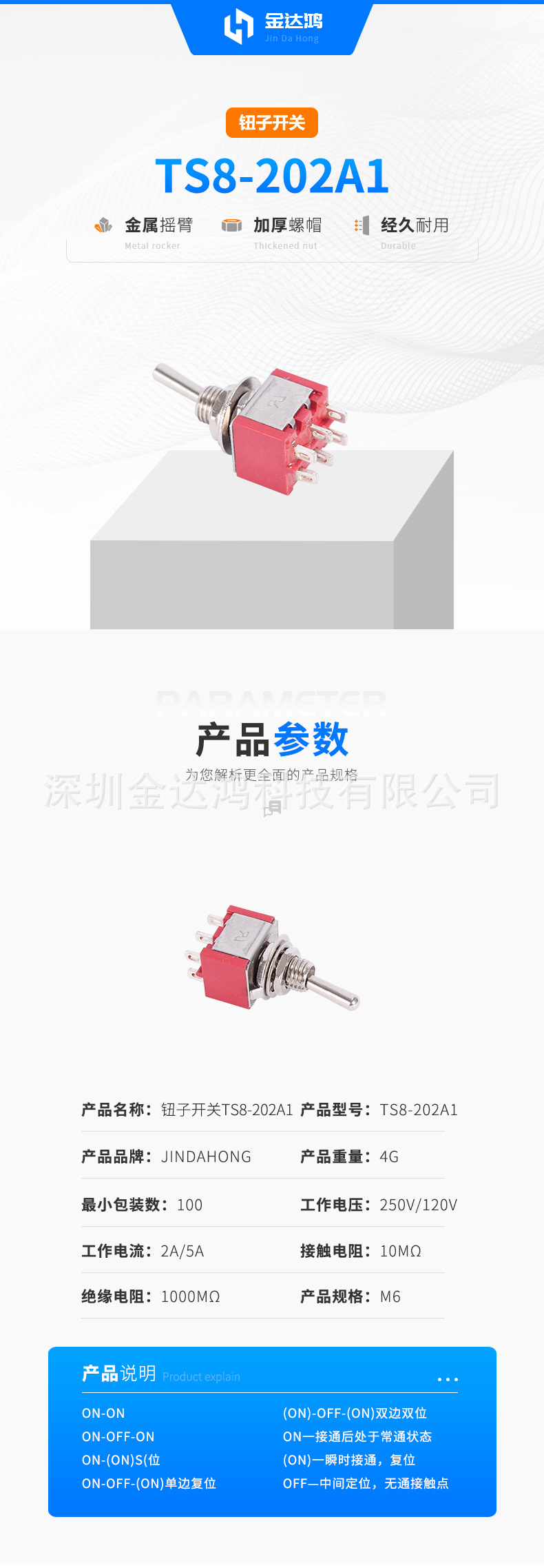 大电流钮子开关TS8-202A1小型尖脚立式6脚摇杆开关拨动开关现货