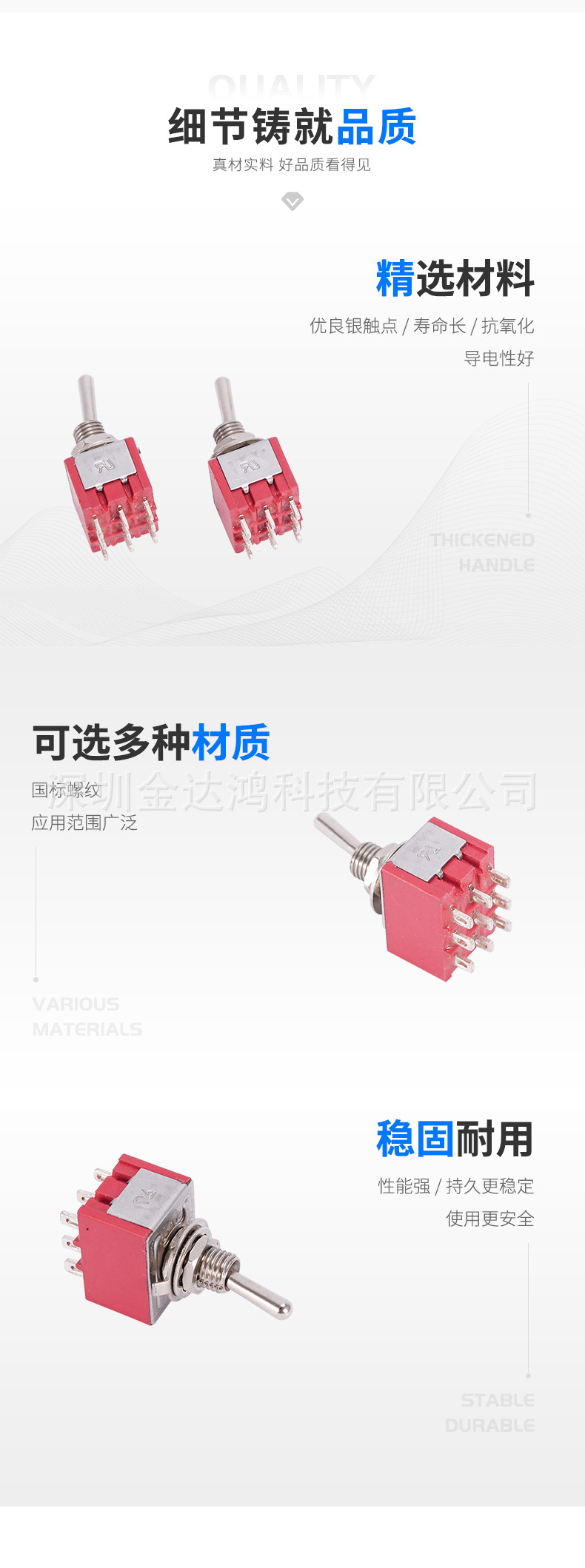 小型九脚两档带孔焊线脚钮子开关TS8-302A1摇杆开关扭子开关现货
