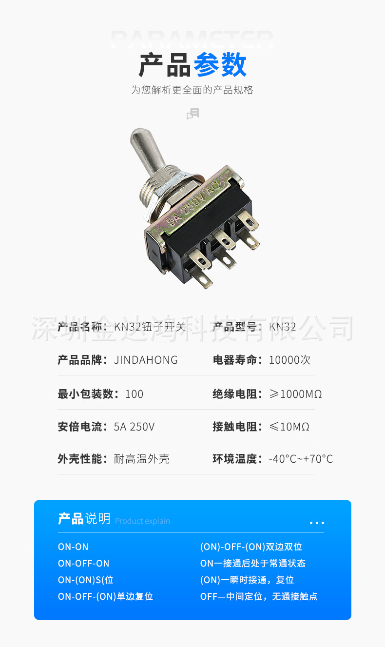 现货供应钮子开关KN32六脚两档摇头开关玩具摇杆钮子开关厂家