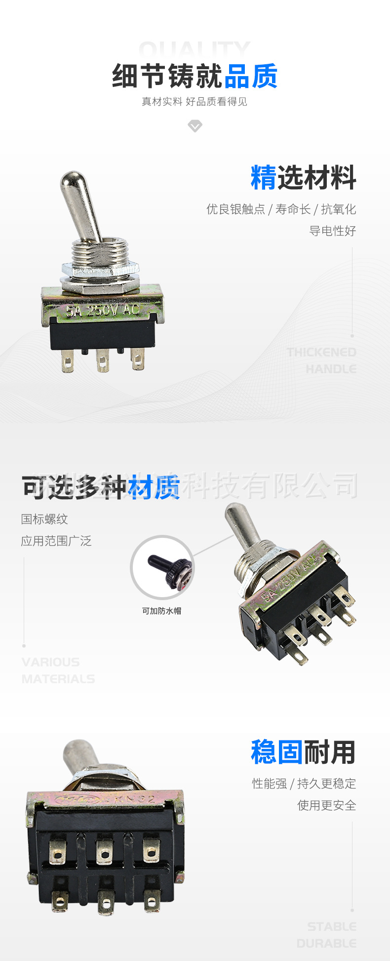 小型九脚两档带孔焊线脚钮子开关TS8-302A1摇杆开关扭子开关现货