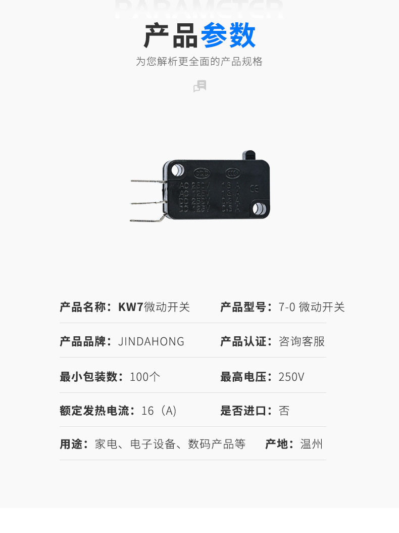 供应KW7微动开关系列7-27-3 三脚带轮金属大行程开关微动开关