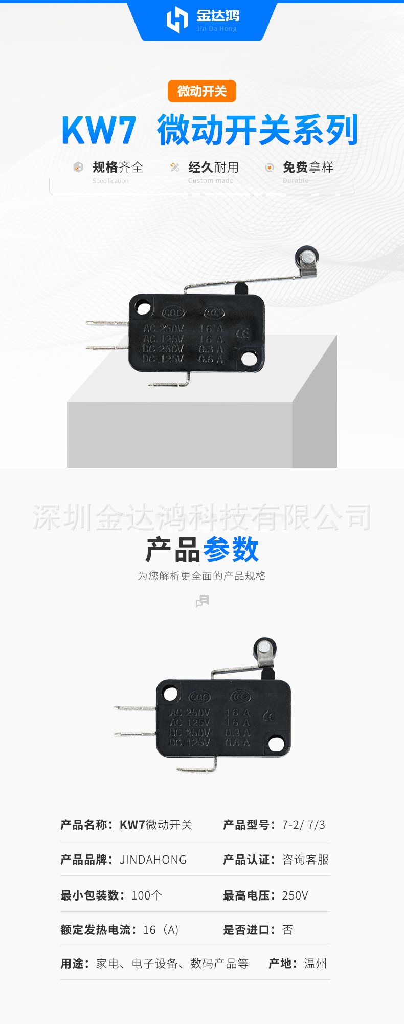 供应KW7微动开关系列7-27-3 三脚带轮金属大行程开关微动开关