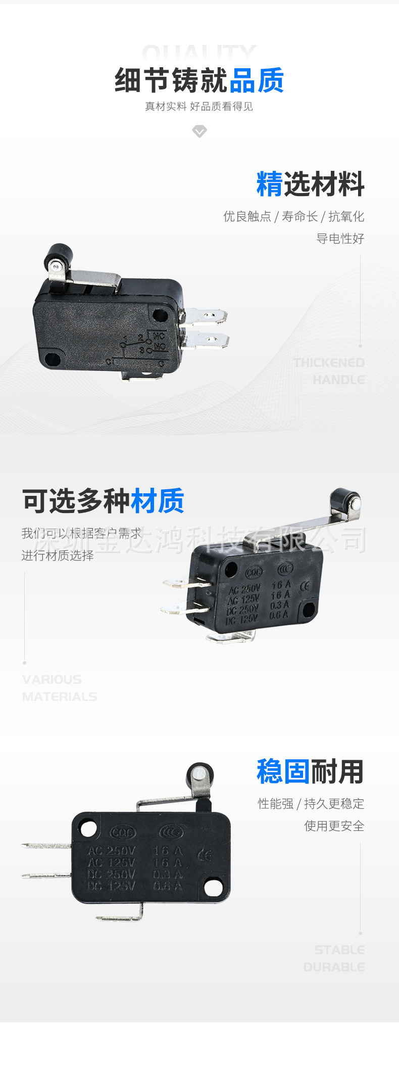 供应微动开关KW7微动鼠标灵敏开关三脚有柄金属大行程开关厂家